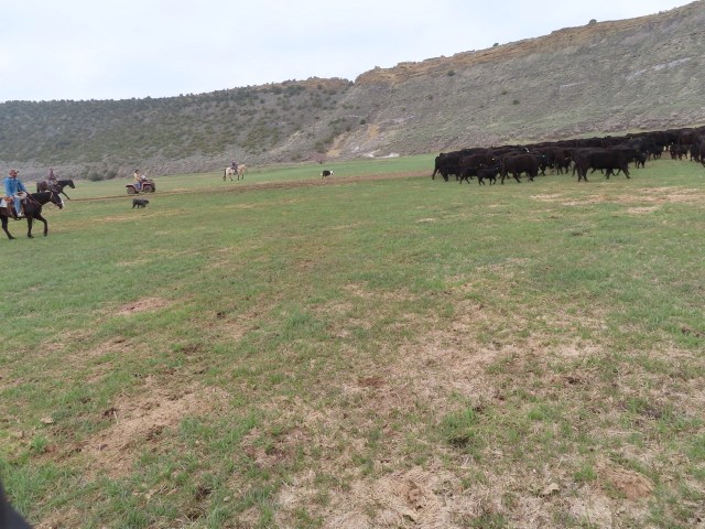 We only had to go through the gate at the top of the hill, then we’d hold them up, let them settle a bit, and pair them out, momma and calf, to make their way out in this huge pasture. Part of that plan came true.