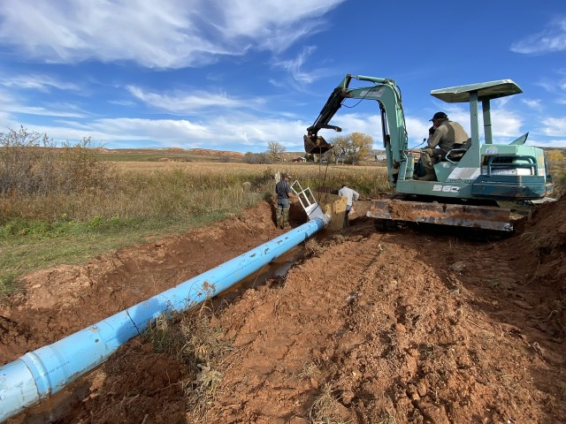 Time for finish work, a little hand shoveling, and cleanup, and leaving Vernon to finish covering the pipe.