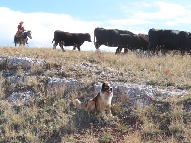 It was a long day but a beautiful one! Oh, and look! An actual photo of me and my dogs with the cows all strung out! Photo courtesy of Megan.