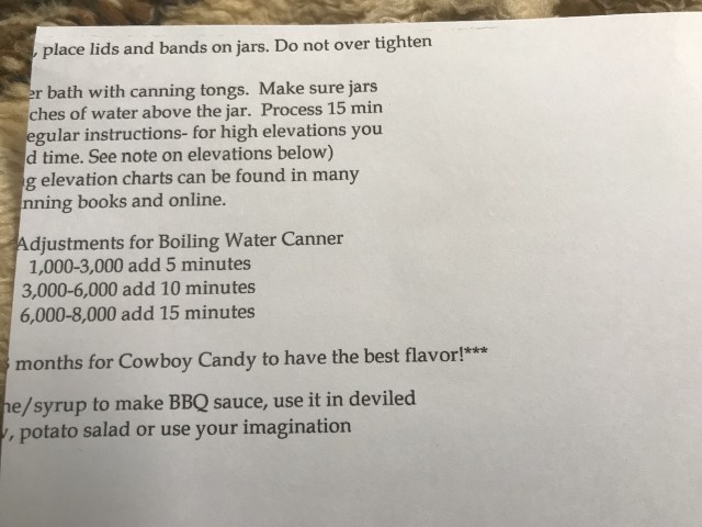 It smelled quite wonderful, as I’m a fan of these sweet jalapeños. While they didn’t complete the water bath processing during class, the teachers continued on and managed to get most everyone a small jar of Cowboy Candy. Does it sound good to you?