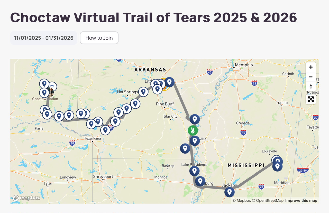 ”Chief Folsom and Chief Nitakachi’s people marched north from Arkansas Post and joined the Memphis to Littlerock Military Road at a place called the Grand Prairie. They continued to march westward toward Littlerock in the freezing temperatures.”