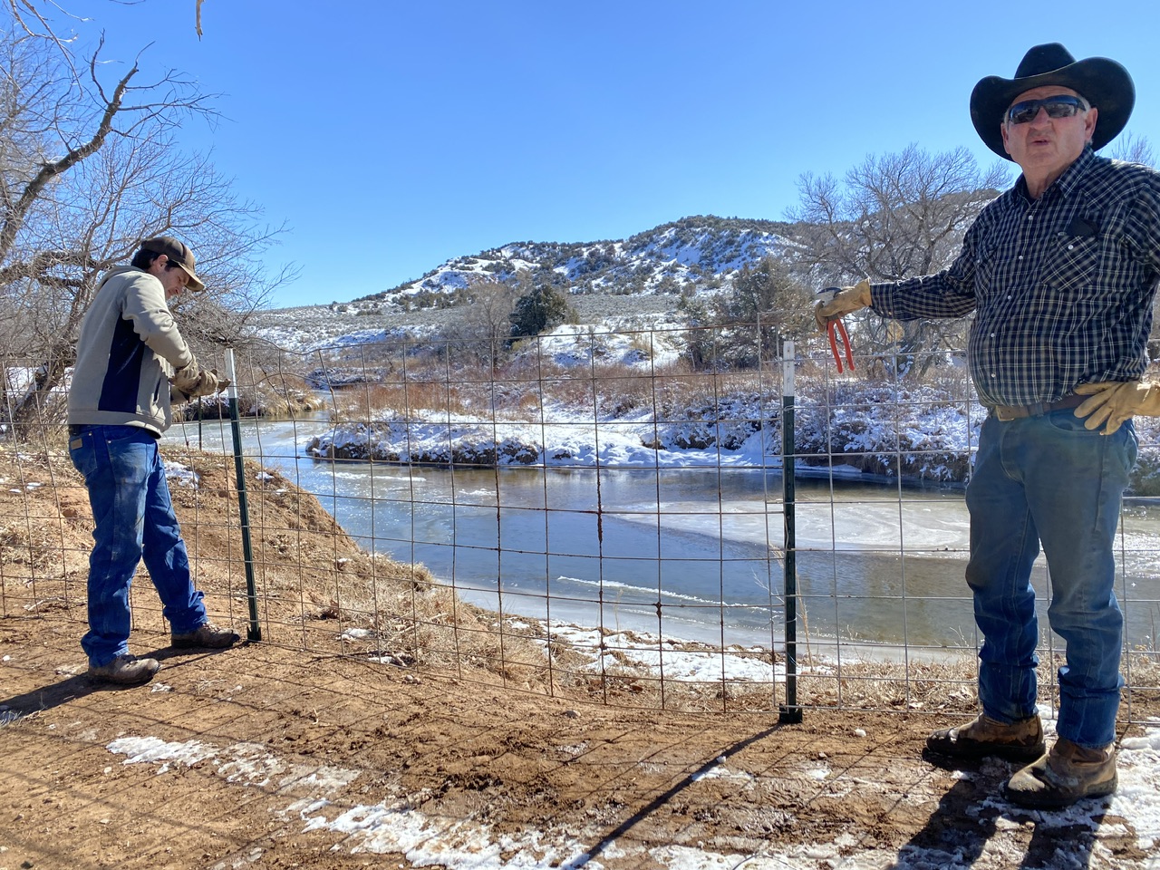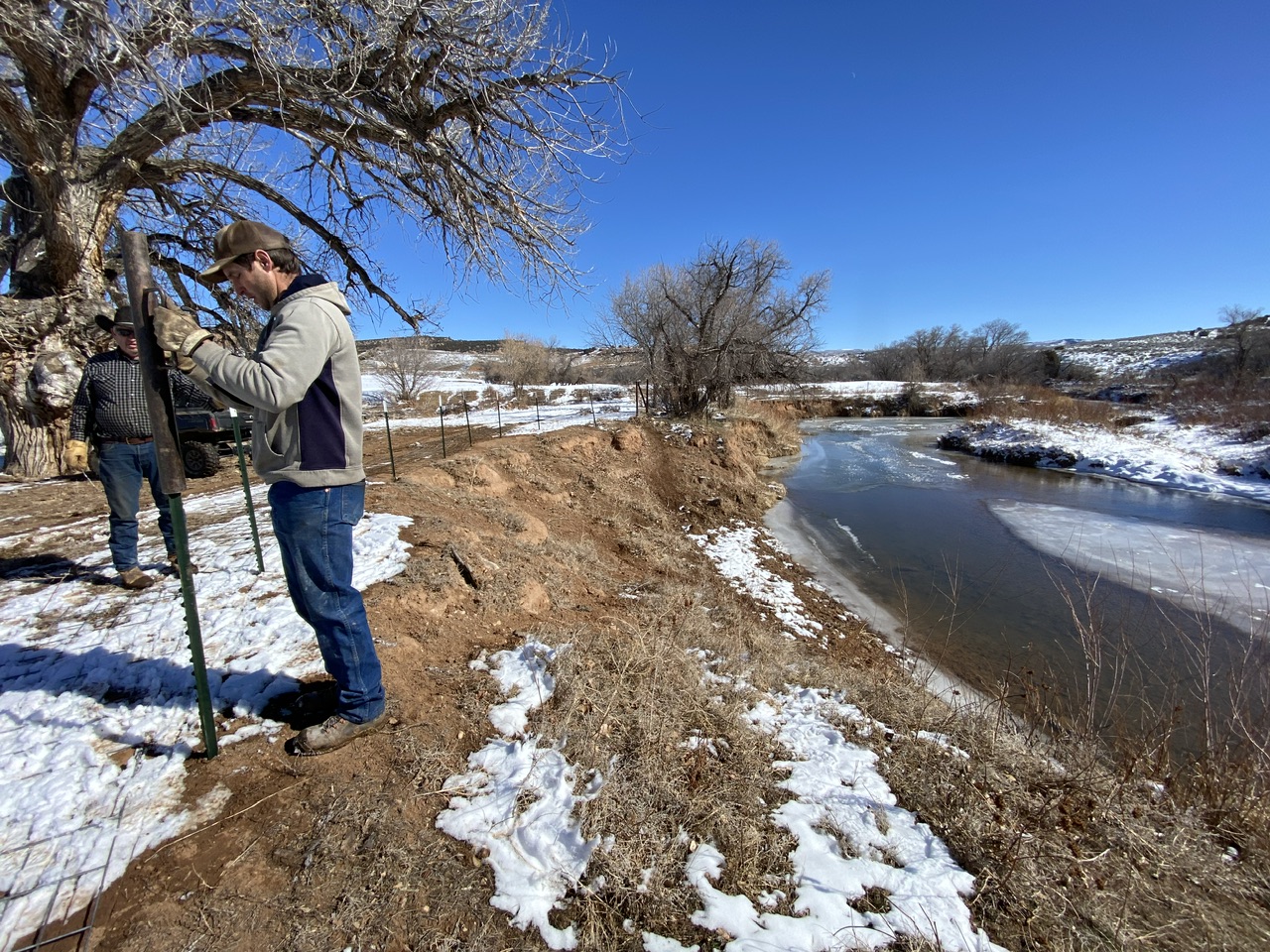 Then we moved the electric fence to enlarge the space. Then the electric fence along the creek has become a real fence. Then, just a bit ago, we put in a water tank thanks to the new pipeline. Now that they have another place to drink… and before a baby calf staggers off into the water gap… we decide to fence off “the best water gap we have”, according to Vernon.