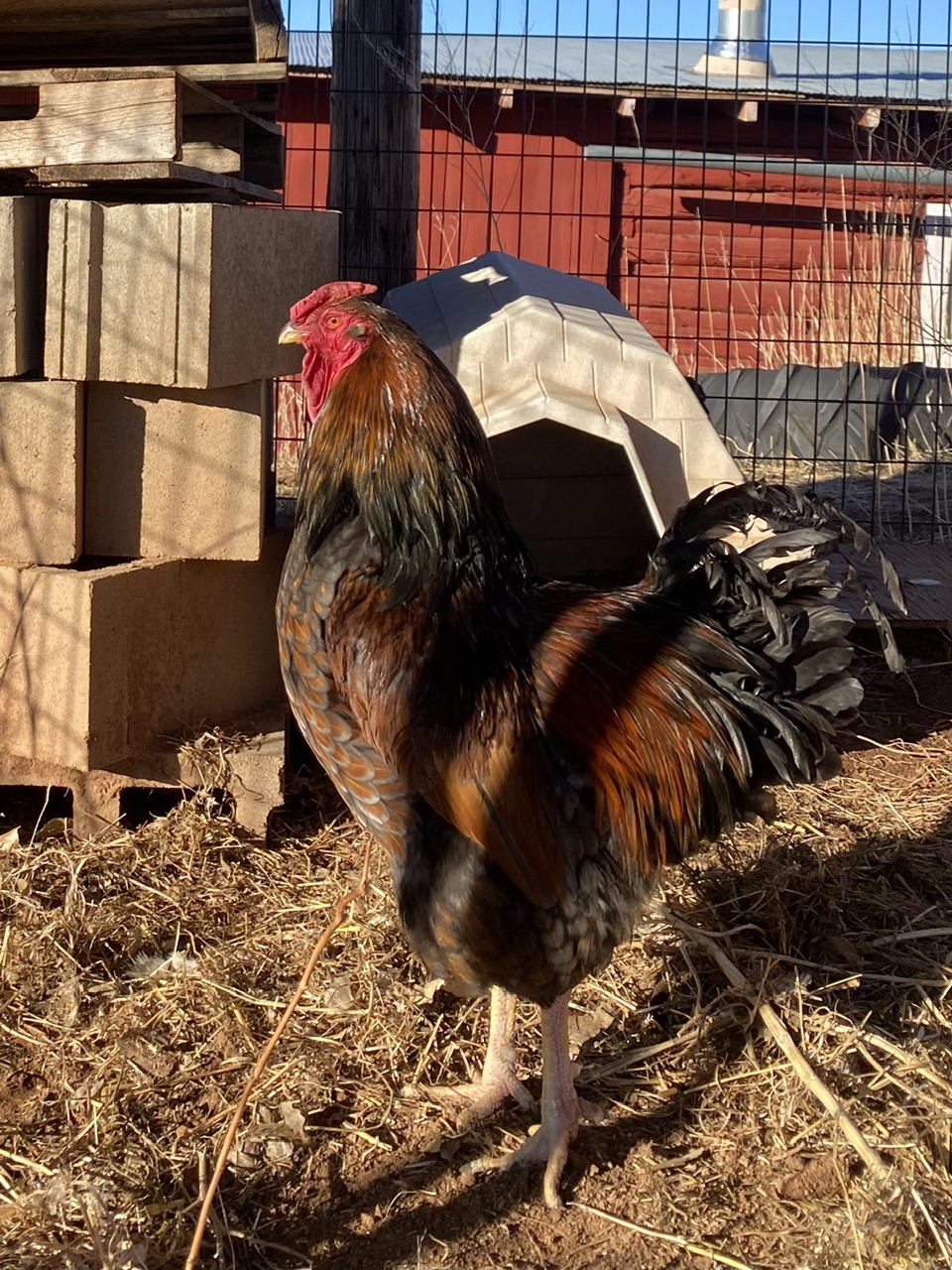 Harold came from Victoria. Harold was my last rooster’s “brother”. Victoria ended up with three roosters last spring. Unfortunately, my rooster didn’t make it after his incident getting caught in my fence. She was thrilled to give me another one.