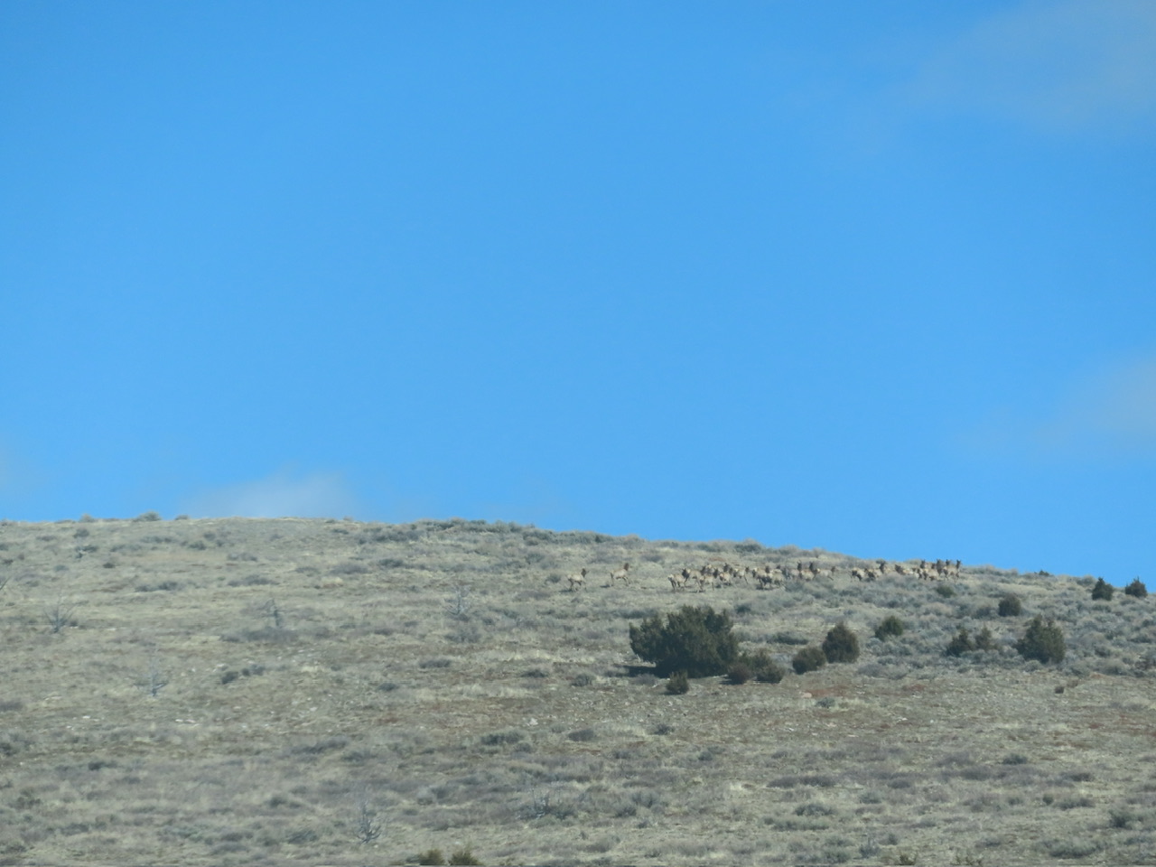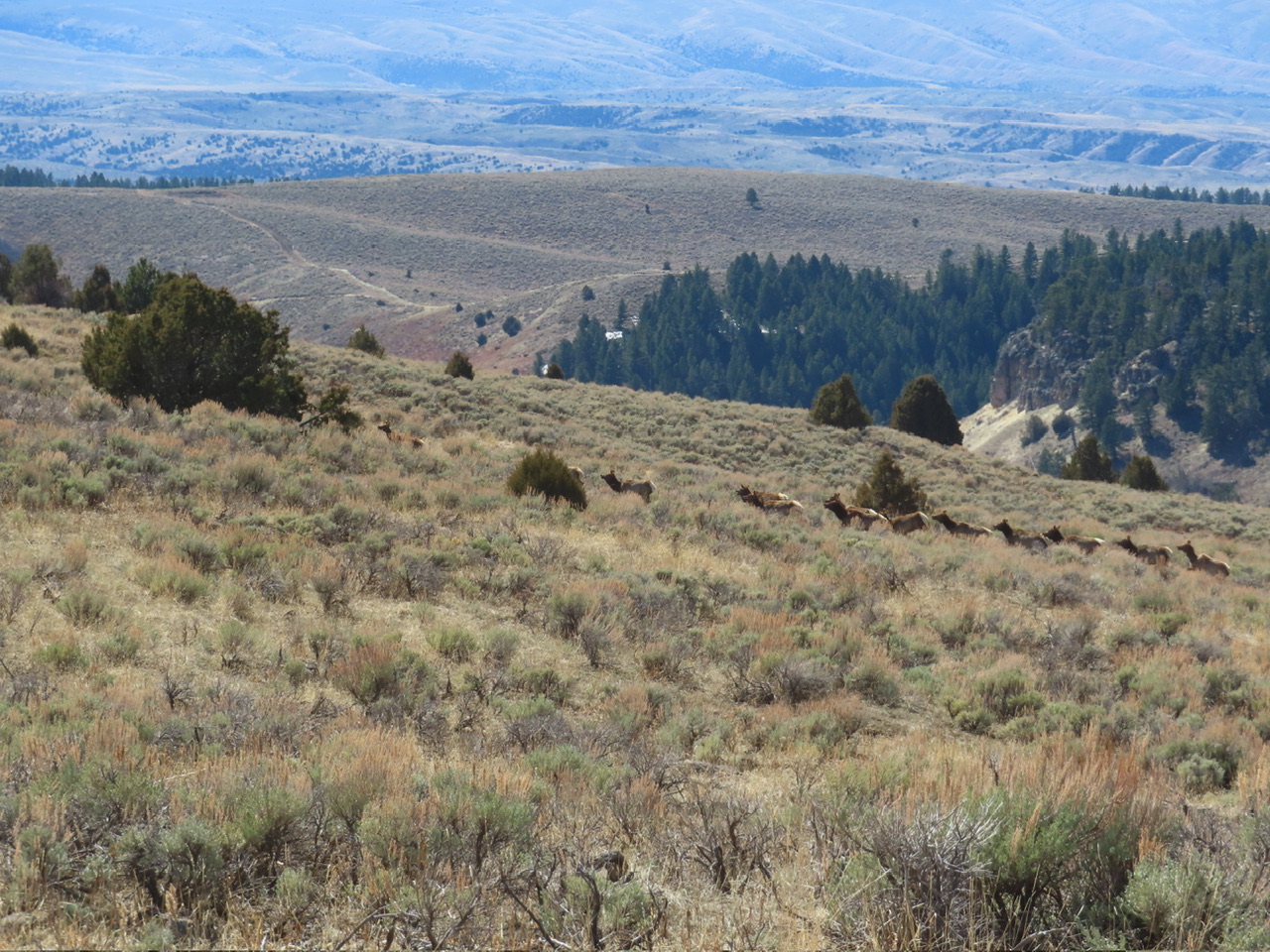 The little creek that usually will be flowing over the road instead is at its late July level. More elk ran up from a canyon…