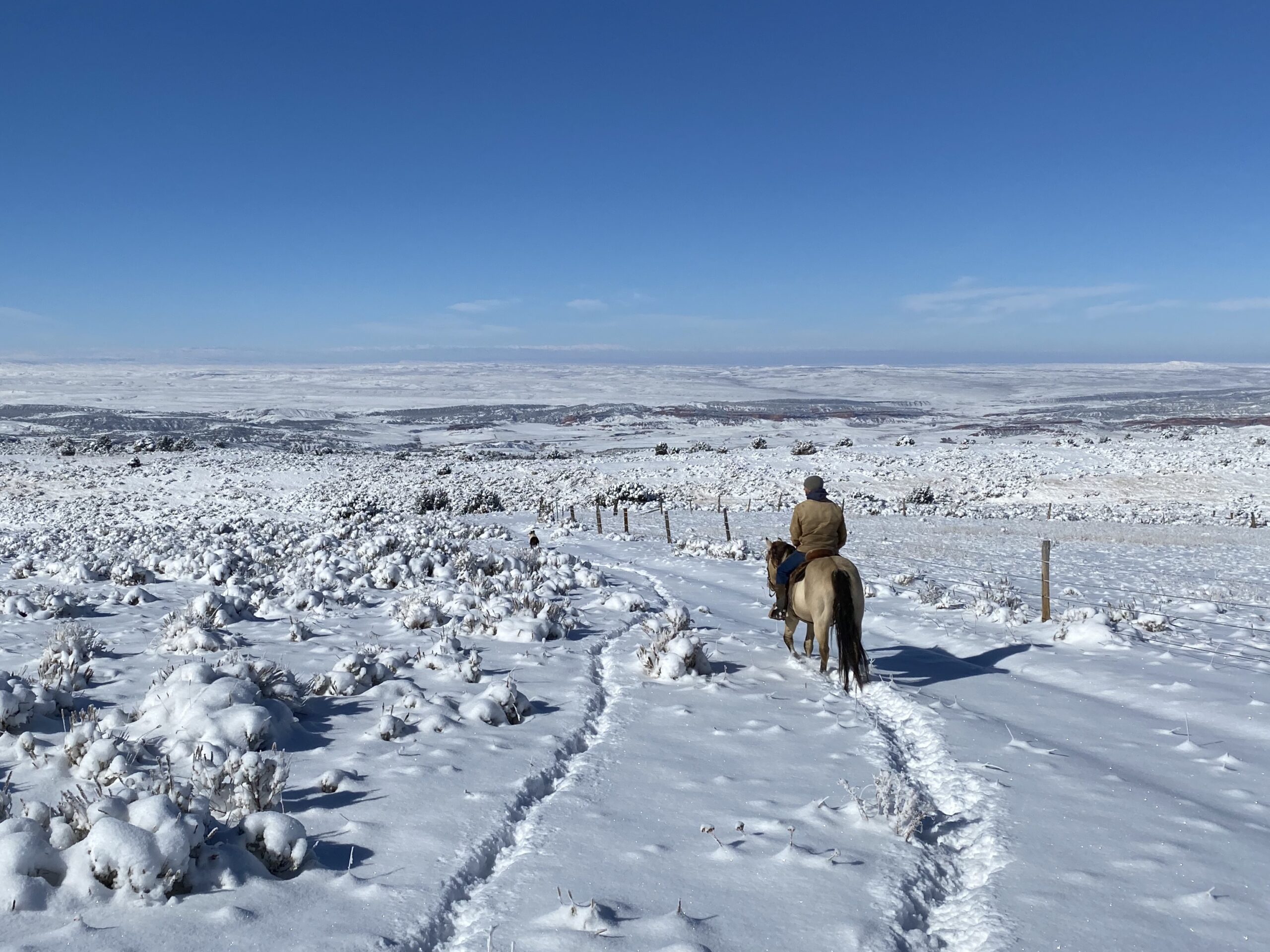 Snow. Lots of it. Six degrees this morning. Perfect day to move some cows, right? Once again, I opted for babysitting and sent the youngsters and Vernon off into the snow. There is a soothing look to fresh snow and blue skies. It looks pretty… but I know how Panama can trip through this section…