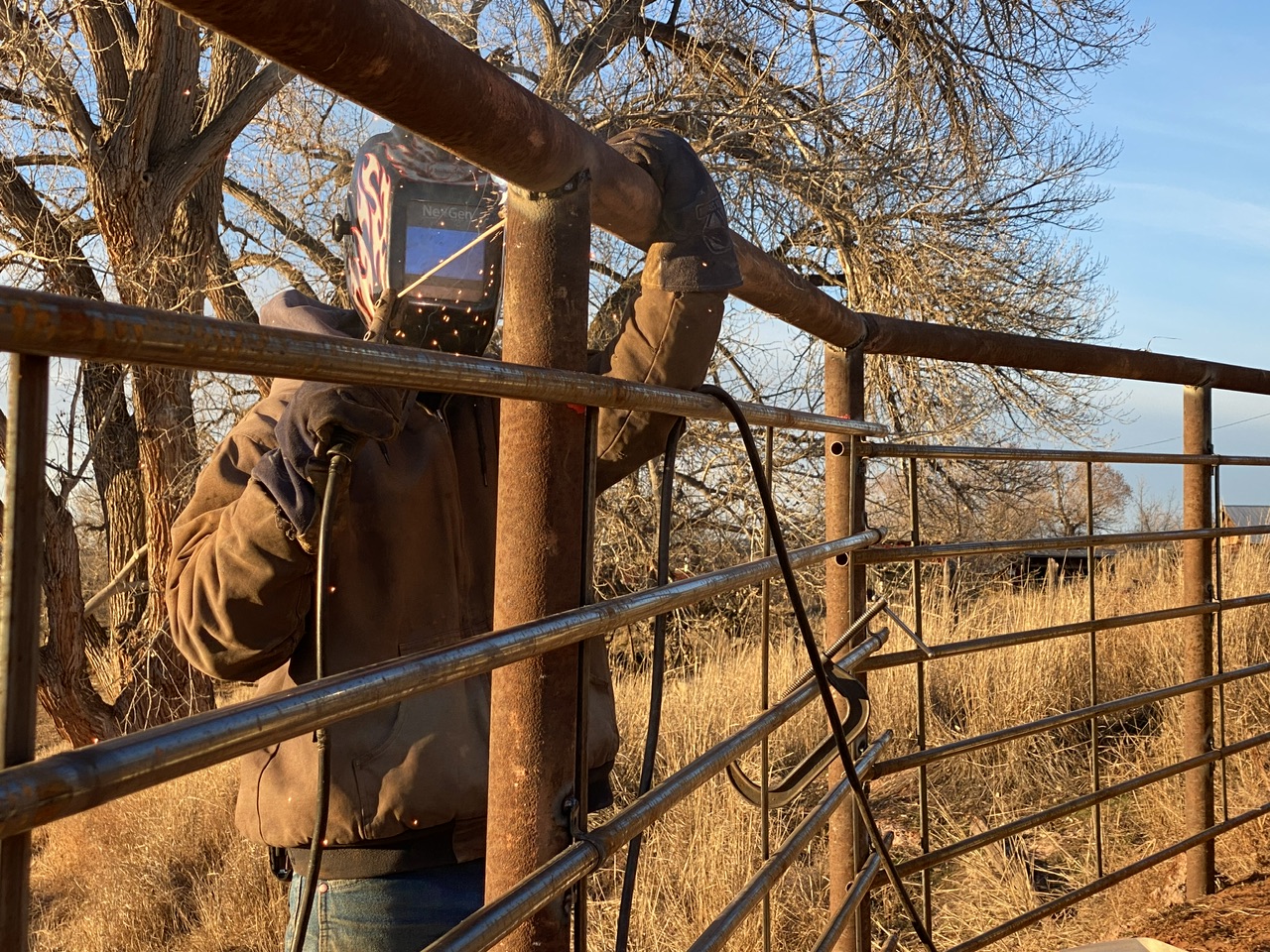 The posts that were pounded in a few days ago finally gained their rails of continuous fence. Brandon and Vernon worked on cutting saddles in the top of the posts and aligning the rest as good as possible. Brandon was there alone welding when I wandered over. Not the prettiest of fences we’ve ever built,…