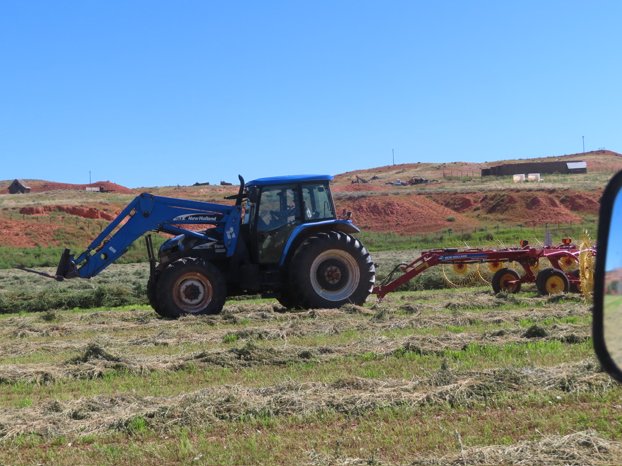 Back to it. The hay has been cut and left to dry. At some point, we will come along and rake it. Raking serves two purposes. 1. To flip the hay over, putting the dry side down, and giving the wet side a chance to dry. 2. To put two windrows together, to save the…